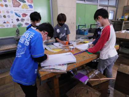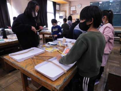 段ボールを使って、迷路を作り、ビー玉を転がします。