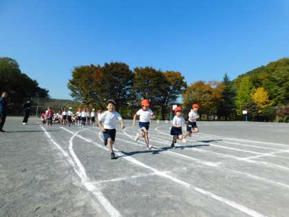 1年生は小学校で初めての50m走です。当日もしっかりまっすぐ走れていて感心しました。写真はリハーサルの様子です。