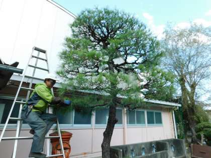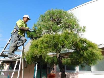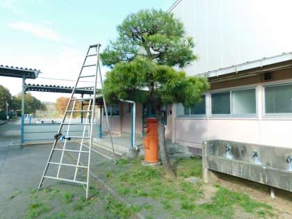 用務主事さんが体育館前にある松の木を剪定してくれました。スッキリしました。