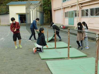 休み時間には、さっそく子供たちが鉄棒に親しんでいました。