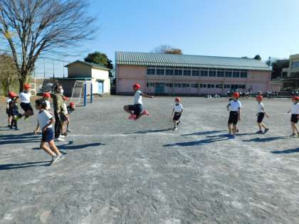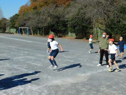 3組は大繩を跳んでいました。目標は5分間で200回です。1回目は惜しくも189回。2回目は見事218回を跳べました。