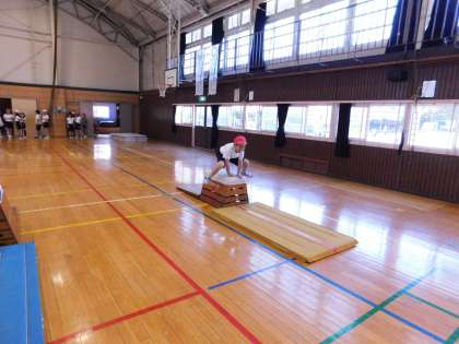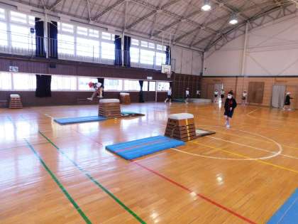 1組は体育館で、跳び箱に挑戦していました。初めて跳べた子もいて、喜んでいました。おめでとう!よかったね。