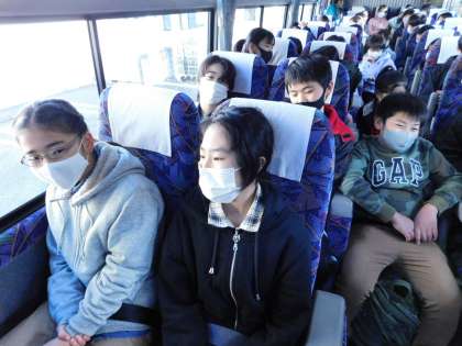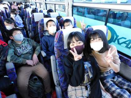 バス車内です。6年生も楽しさ満開、笑い声が絶えませんでした。
