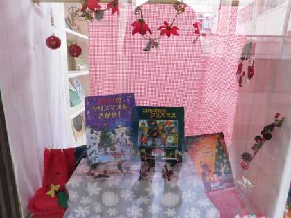 図書室のウィンドウが、クリスマスバージョンに変身しています。図書ボランティアの皆さんが飾り付けしてくれました。ありがとうございました。