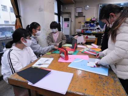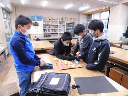 図工室では、図工クラブが何やら制作中。作ったボードゲームも、お楽しみ中です。