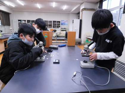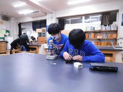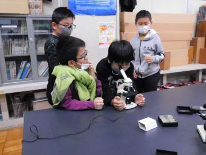 理科室では、科学クラブが観察標本(小さないきもの)を顕微鏡で観察していました。子供たちはミクロの世界に大喜びしていました。