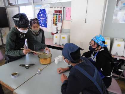 6年3組に続いて、2組が調理実習をしました。