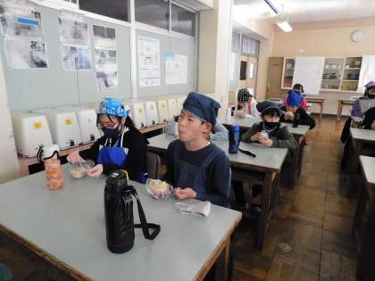 最後にみんなで、一緒に食べました。3組と同じように、前を向き、おしゃべりをしないで食べました。