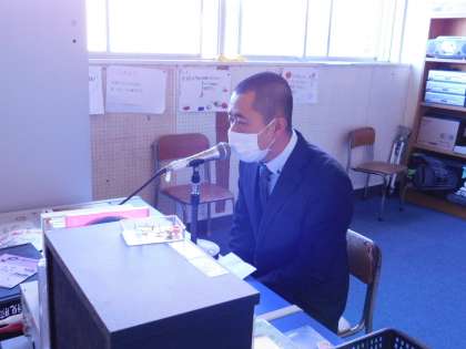 3学期の始業式も、放送で行いました。副校長先生が司会、生活指導主幹の先生から、コロナに負けない学校生活の仕方を話してもらいました。