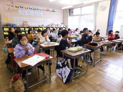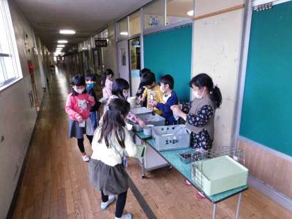 1月12日から、給食が始まりました。初日の給食には、鏡開きとして、「しらたまあずき」もでました。