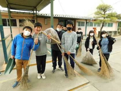 校庭では、6年生が小雪降る中、落ち葉はきをしてくれていました。ご苦労様。