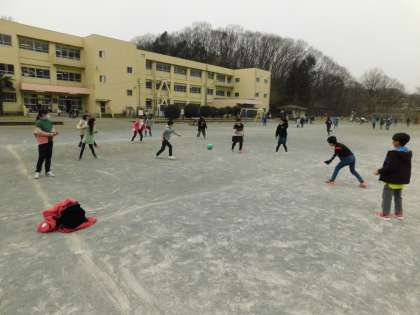 ドッジボールには、先生も入っていました。