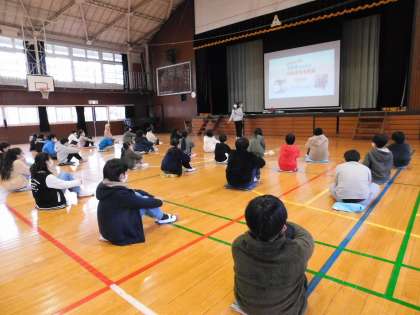 当日は、市の交通安全指導員の方が講師としてお話をしてくださいました。5年生の内容は、自転車が軽車両(車の仲間)であり、加害者になることがあること、場合によっては、高額な賠償をしなければならないことも話しました。