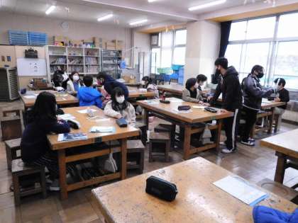 3学期初めての図工授業です。どうやら席決めの最中です。