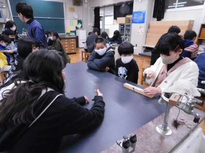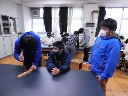 バールを使って抜く時も、どうやったら少ない力で抜けるかを、実験を通じて話し合いました。