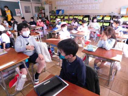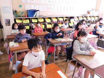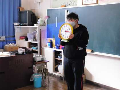 1年2組では時計の針の読み方を学習していました。子供たちにとっては難しい課題です。