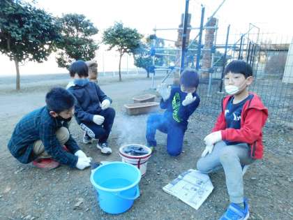 当日午後は、少し風が強く、マッチで火をつけるのに苦労していましたが、理科の授業で教わっていたので、どのグループも、着火することができました。