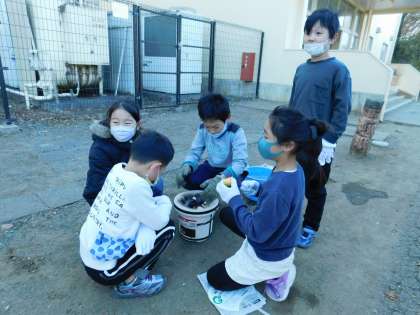 どれどれ、火は点いたかな。子供たちも真剣です。
