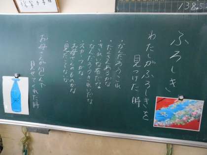 日本の良き伝統品である「ふろしき」を教材に学習しました。