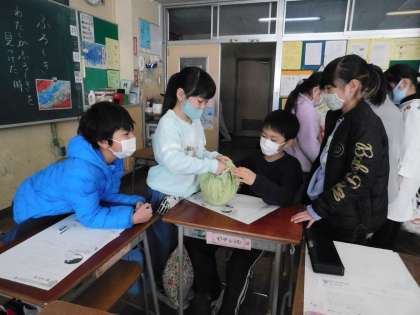 子供たちは、見よう見まねで上手に包んでいました。