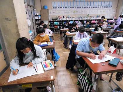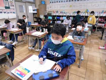 2年1組は生活科の授業でした。「大きくなった ぼく・わたし」と題して、自分の成長記を書いていました。