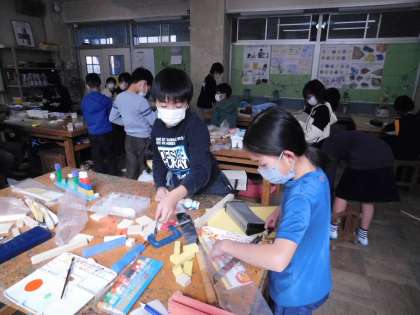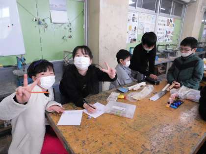 切り終わった子は、ボンドでくっつけ、色を塗ります。
