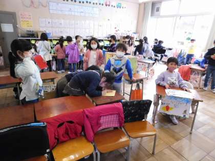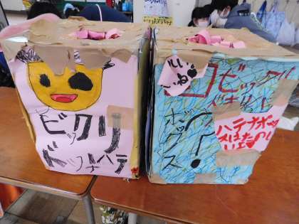箱の中に手を入れて、中身を当てます。タイムが早い方がいいです。
