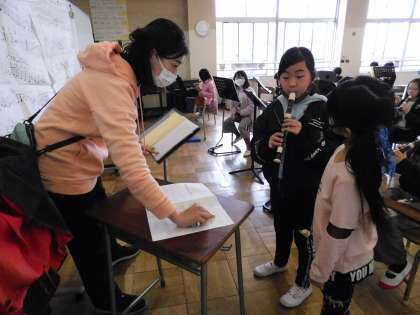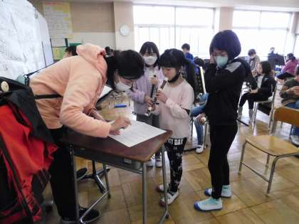 吹けた子は、先生の前で演奏し、合格をもらいます。