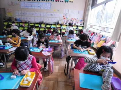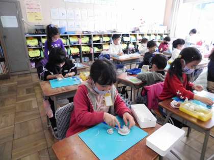 1年1組は粘土で造形活動をしていました。1年生もだいぶ手先が器用になっています。