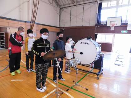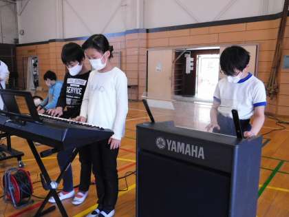この日が録音本番日でした。みんな真剣に頑張ってくれました。打楽器とシンセサイザーの子たちです。