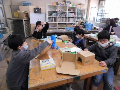 段ボールやマグネットを使って、素敵な作品を作っていました。
