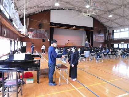 卒業式に向けて、5・6年生が合同練習をしていました。