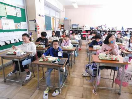 写真は2年2組です。2年生もよく食べて、大きくなりました。