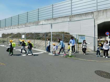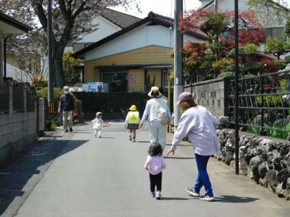 今日もいい天気です。八幡神社方面に来ました。たくさんの保護者の方が出迎えてくれていました。ありがとうございます。