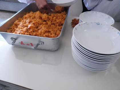 4月8日から2年生以上で給食が始まりました。6年生は初めての磁器食器です。落とさないよう慎重にね。