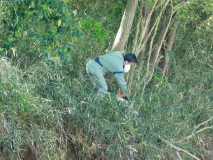 学校施設課の皆さんが、本格的な工事が始まる前に、フェンス際の木を伐採してくれています。