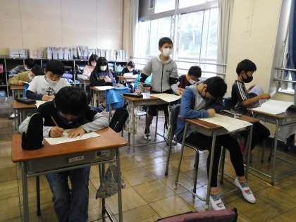 5年2組は4年生の時の振り返りテストをしていました。