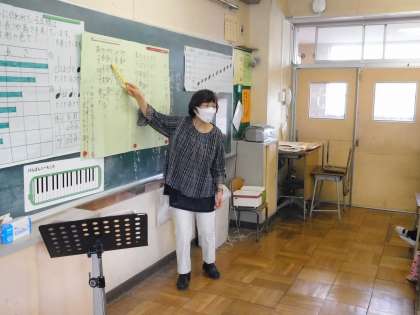 今週から時間講師の先生の授業も始まっています。2年生は音楽を教えてもらっています。