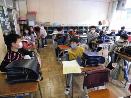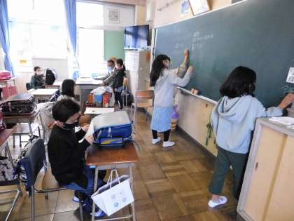 保護者会のある5年生。今日は5時間授業です。いつもより1時間早く帰れます。5の3の子供たち、帰りの会の場面です。