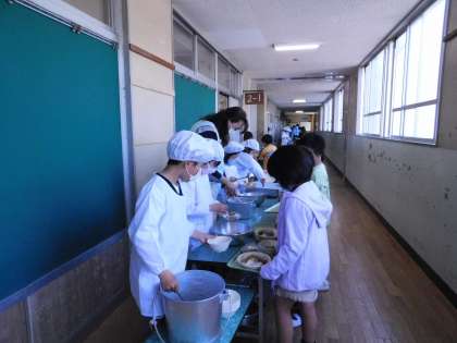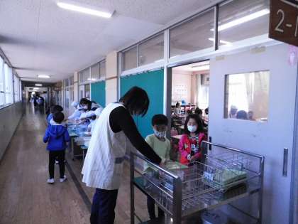 2年1組、配膳の様子です。さすが、1年先輩の2年生。慣れたものです。