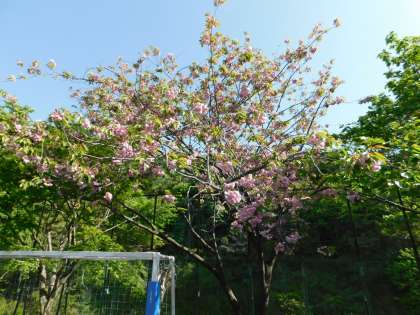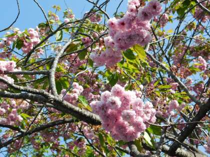 もう一つの八重桜は、ピンクが多い花が付きます。