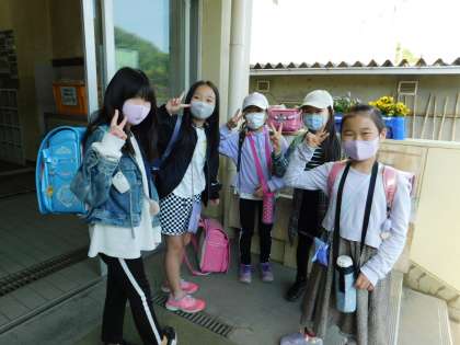今日もいい天気です。子供たちが元気に登校してくれています。