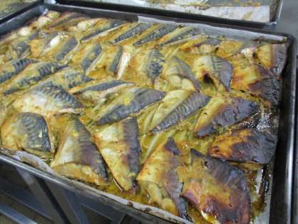 写真はさばのみそやきの様子です。