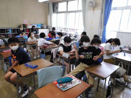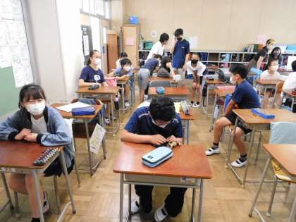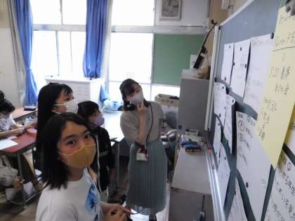 6年2組です。先生と何やら相談中です。