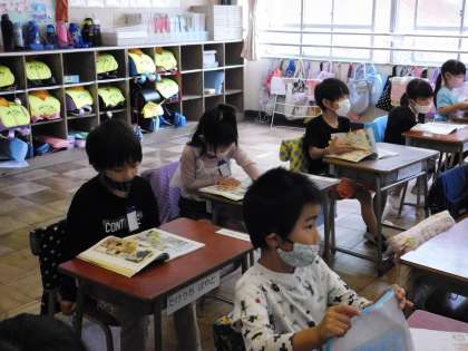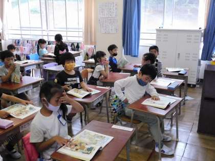 1年2組です。集中してますね。