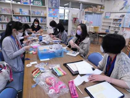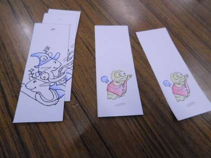 この日は、本に挟む「しおり」を作ってくださっていました。