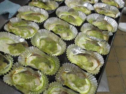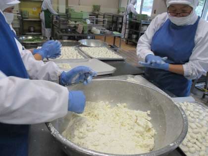 写真は「絹のお吸い物」に入れる白玉を作る様子と、焼き上がりの
