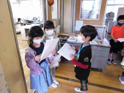 2年生はこの日のために、聞き取り調査も行い、説明原稿を作ってくれました。職員室と給食室です。