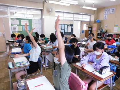 6年生の算数授業です。いい手の挙がり方してますね。