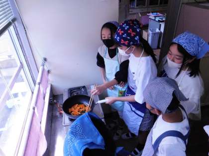 まずはニンジンなど、硬い野菜から炒めていますね。